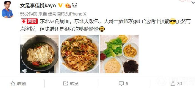 澳门葡京:假期解锁新技能,女足李佳悦晒自制东北美食